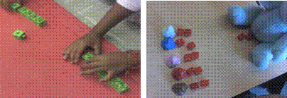 The teachers role was primarily that of a story teller, a problem poser and a summarizer. As the story was being told, the teacher would pose the problem of how to represent the cookie sharing with linking cubes, encouraging pairs to share and to verify if the arrangements were valid. After the story telling, the students were invited to help each other to summarize the mathematics, to make a display of common understanding for the class. It was notable that students were able to articulate not only that there are different ways to compose 12, but that it was the information in the story that had taught them. They were also able to make generalizations about how the more people they had, the less cookies they would have. One intrepid mathematical explorer even noted that 12 cookies shared with 24 kids is one half a cookie each.