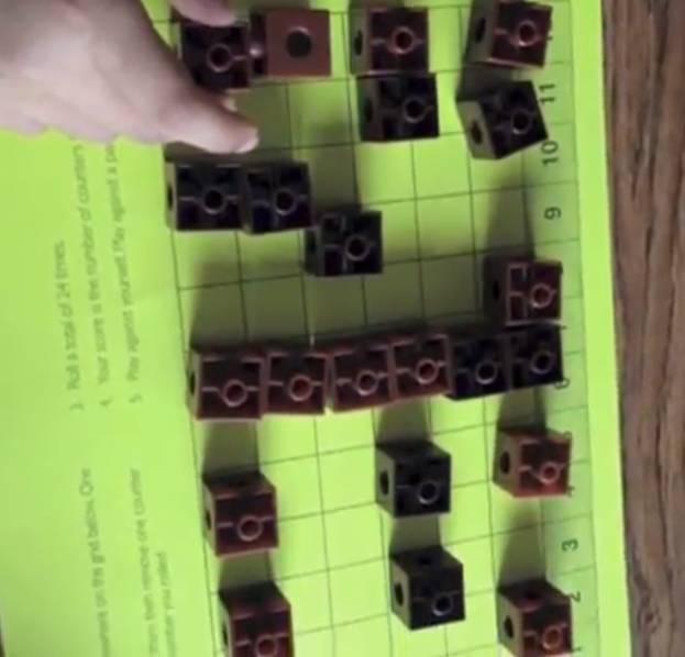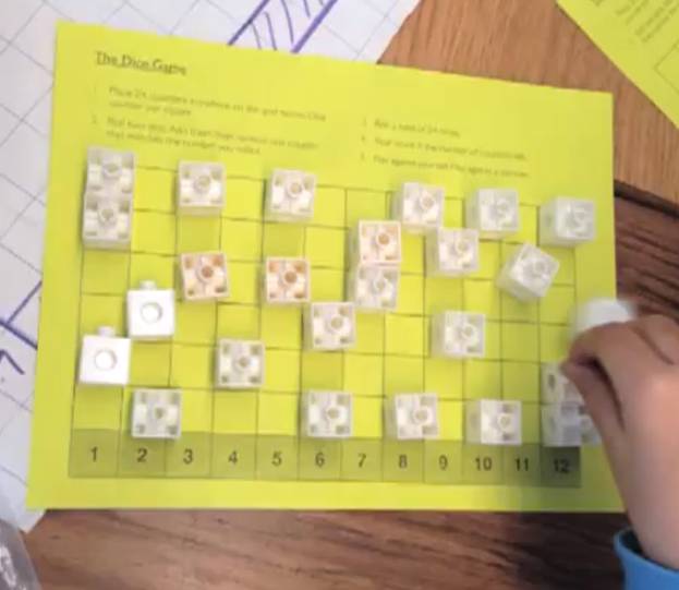 “You can use a grid different ways: Using dice to make a hypothesis about which numbers will come up. Set up counters in such a way so that you maximize your chances of winning.”