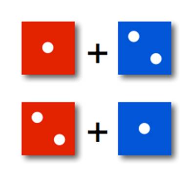 We wondered out loud why this might be so and encouraged the students to talk to each other to see if they might find something different about the outcomes of rolling two number cubes as opposed to one. To help this along the students had been given different coloured number cubes, and it did not take long for someone to notice that there were multiple ways of rolling numbers. It was then quite easy to have the students systematically count the different combinations of number cube rolls that would result in certain number outcomes. The students now had the big idea of theoretical probability, and that you can actually calculate the likelihood of outcomes mathematically.