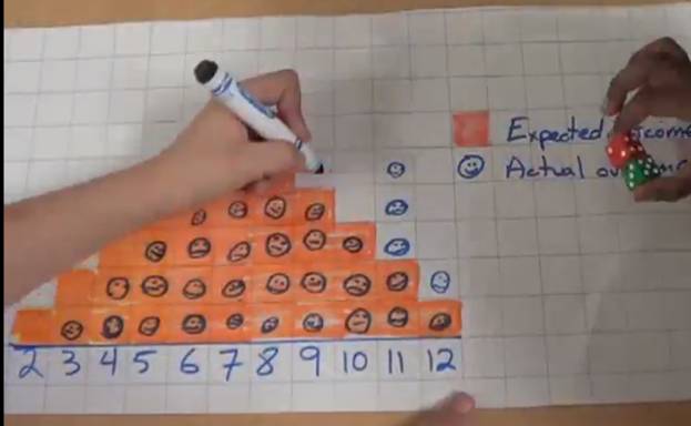 “The number 7 is the most frequently rolled because it has the most possibilities with rolling dice. We have learned probabilities . . . leading to the explanation of odds . . . she is now booking a trip to Vegas. :-)”