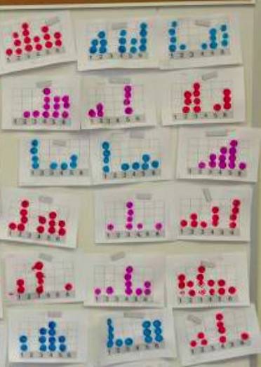 This served as the second discrepant event for the students in this series of math experiences. There is a predicted probability for an event, but it is still possible for something else to occur. The students tested this theory using a graph of the expected outcomes and rolling number cubes to see how different the actual outcomes were. Even though the individual outcomes were all different they could easily see that there was a trend towards certain outcomes that matched their predictions. The students really had no difficulty with the idea that even though there is an expected outcome, there is still a possibility that it might not occur. They were comfortable with the idea of uncertainty in a way that we, as adults, had not predicted they would be.