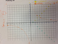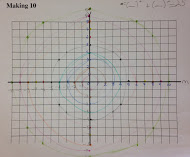 3.We substituted a die marked from 7 - 12. When a student rolled a 10, they were easily able to calculate the other number as zero. When the first 11 was rolled, there was a momentary silence followed by a chorus of, “Minus one! 11 minus 1 is ten.” They were then asked how that might be plotted on the x-y graph. 11 we knew how to plot, but - 1? Where might that go? The students naturally pointed to the line beneath the x-axis.
