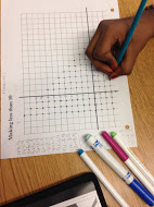 She told me she learned 2 new words. One is parallel, and the other is writing an ordered pair such as (1,9). She showed me how to plot a number pair on the grid. She also identified the horizontal axis and the vertical axis. She also talked about the patterns in the number pairs.